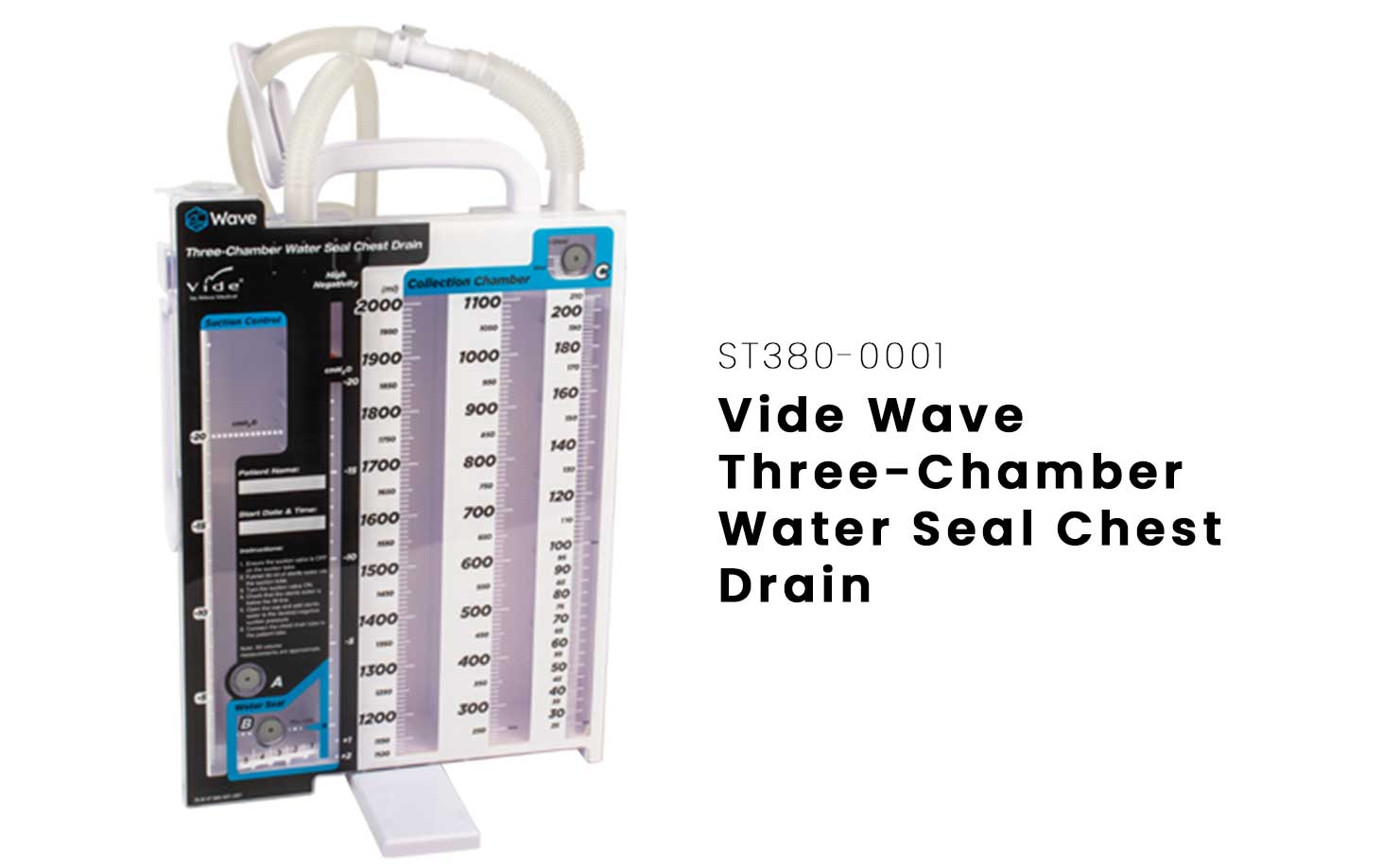 Vide’s Water Seal Chest Drainage Unit is a 2,000ml sterile disposable three- chamber chest drain. It is designed as a single collection unit used to remove air and fluid from a patient’s intrapleural cavity, as a result of pneumothorax, hemothorax, mediastinal shift or other complications that affect the normal breathing resulting from a loss in intrapleural negative pressure.